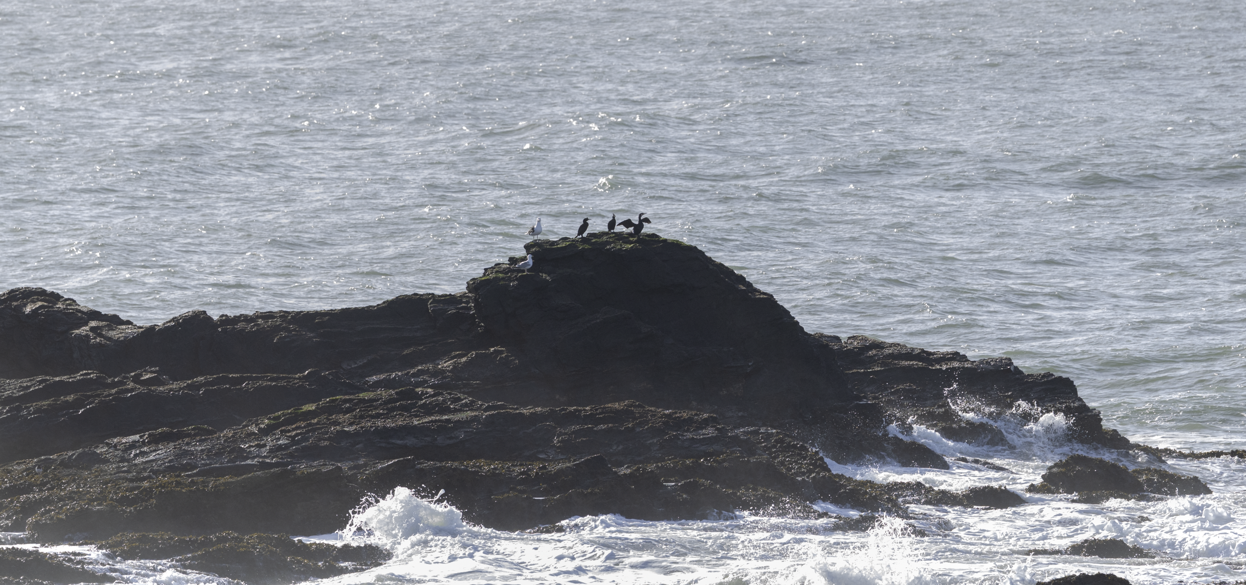 I could see another 3 cormorants out at sea, this time sat on a rock. So far away thought I thought to myself there isn’t much point in taking an image of them, until one of them opened its wings.