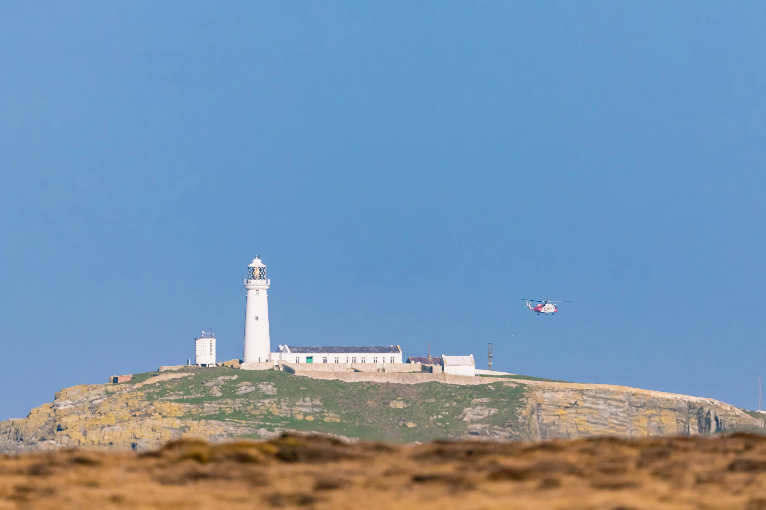 I took my chance to grab a photo of it against the blue sky, following it around I took another one of it as it flew past South Stack Lighthouse.